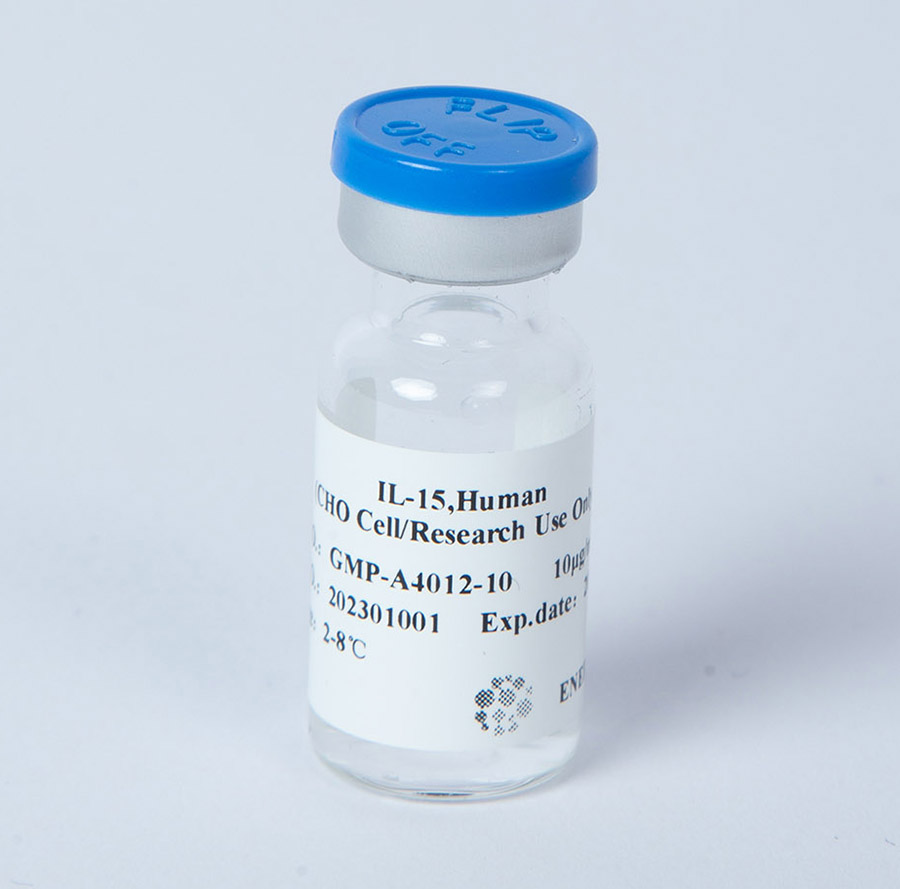 重组人IL-15是一种调节T细胞和自然杀伤(NK)细胞活化与增殖的细胞因子,主要由单核细胞和巨噬细胞产生。IL-15与IL-2具有类似的生物学功能,与IL-2共用γc受体亚单位,均能诱导T细胞、B细胞和自然杀伤细胞(NK cell)的分化,促进T细胞、B细胞和NK细胞的增殖,但IL-15的在免疫细胞治疗中的优势在于不会引起活化的T细胞凋亡。IL-15在免疫治疗中的另一个特性是维持记忆性T细胞,从而对长期抗肿瘤活性中起到重要作用。IL-15作为一种多效细胞因子,在免疫,肿瘤发生,过敏性反应及自身免疫疾病中均发挥着重要作用。