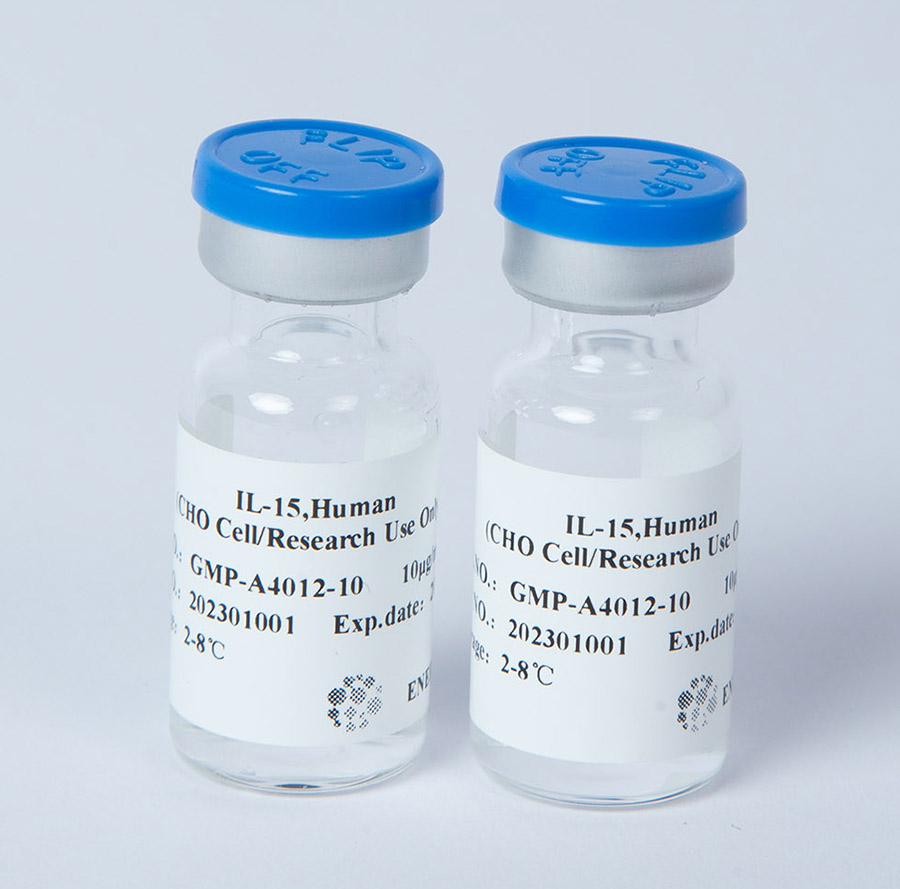 重组人IL-15是一种调节T细胞和自然杀伤(NK)细胞活化与增殖的细胞因子,主要由单核细胞和巨噬细胞产生。IL-15与IL-2具有类似的生物学功能,与IL-2共用γc受体亚单位,均能诱导T细胞、B细胞和自然杀伤细胞(NK cell)的分化,促进T细胞、B细胞和NK细胞的增殖,但IL-15的在免疫细胞治疗中的优势在于不会引起活化的T细胞凋亡。IL-15在免疫治疗中的另一个特性是维持记忆性T细胞,从而对长期抗肿瘤活性中起到重要作用。IL-15作为一种多效细胞因子,在免疫,肿瘤发生,过敏性反应及自身免疫疾病中均发挥着重要作用。